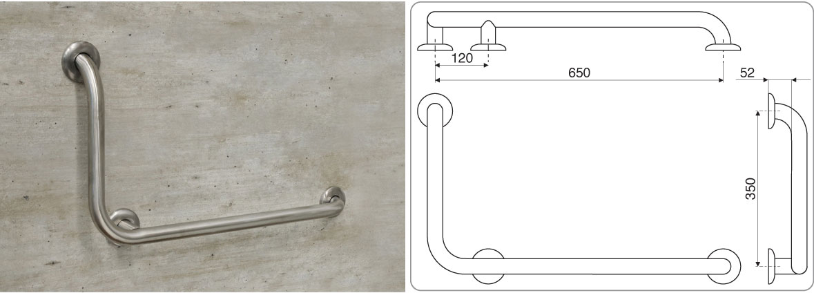 Tipo: Barra recta en «L» de seguridad para ser montada en diferentes tipos de muros. Su morfología permite soportar esfuerzos verticales como horizontales.