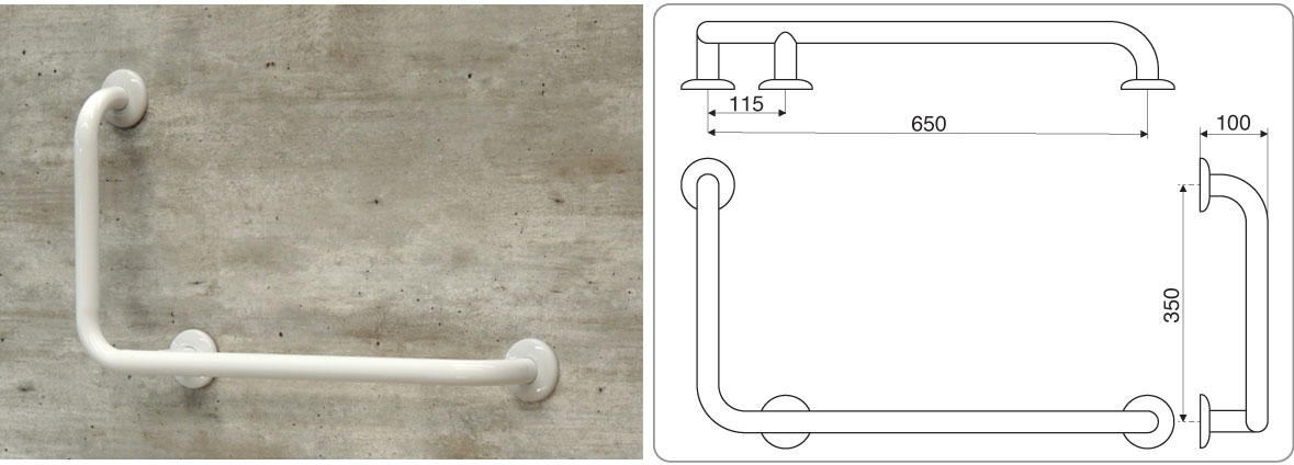 Tipo: Barra fija recta en «L» de seguridad para ser montada en diferentes tipos de muros. Su morfología permite soportar esfuerzos verticales como horizontales.