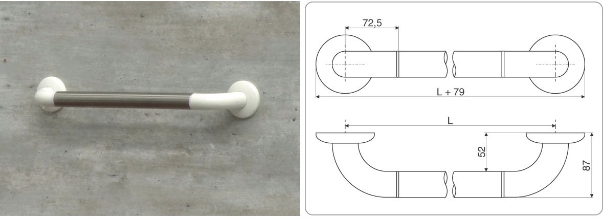 Tipo: Barra fija recta de seguridad para ser montada en diferentes tipos de muros.